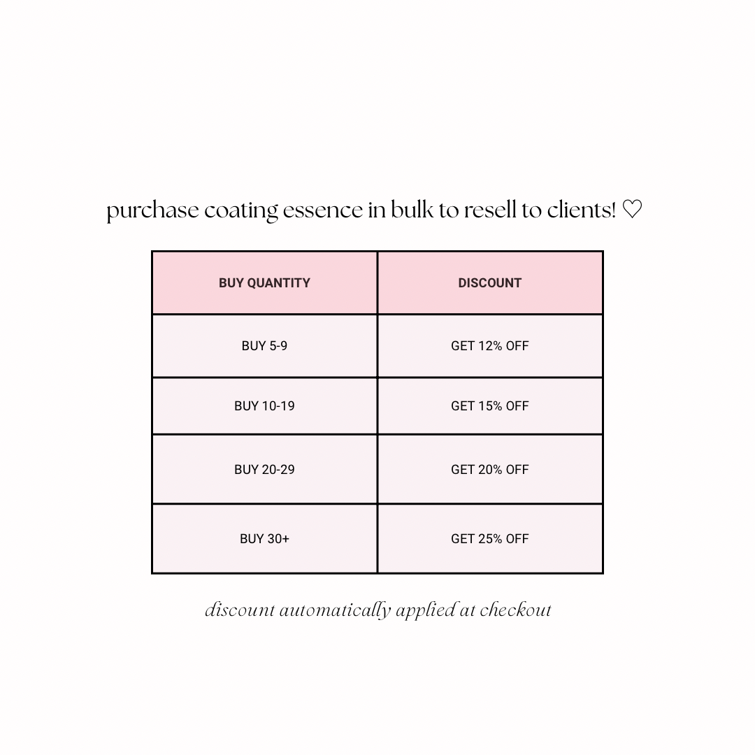 The essence shields lashes from external damage allowing you to maintain the style of the curl as the lashes continue to set after the lash lift appointment.
